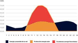 Aprovechamiento de Excedentes de una instalación fotovoltaica: Toda energía que nos sobre, la podemos utilizar para cargar la batería y utilizarla, por ejemplo, durante la noche.