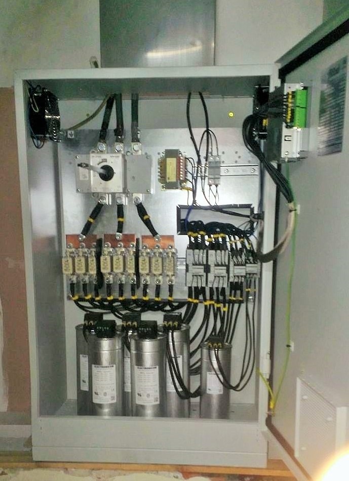 Las baterías de condensadores son equipos que se instalan en una instalación eléctrica para eliminar o reducir la energía reactiva que se genera. Incorporan una unidad electrónica de regulación que en cada momento conecta o desconecta, mediante contactores y de forma automática, los condensadores necesarios para adaptarse a la demanda de potencia reactiva que existe en cada momento, de forma que no sea absorbida de la red. Así se puede mantener el factor de potencia constante y con un valor cercano a la unidad.
